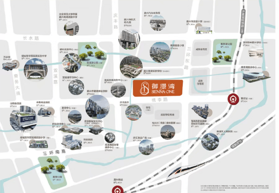 周边配套:交通方面,项目东靠三环东路,西依南江路,南至槜李路,西侧庆丰路上有有轨电车路线,距长水路高架直线距离约 800 米,直线距离高铁南站约 3 公里。教育方面,有嘉兴南湖实验学校教育集团万兴校区、嘉兴市机关幼儿园(晴雪园)等。医疗方面,凯宜国际医院直线距离约 800 米。商业方面,山姆会员商业中心距离项目约 1.5 公里,万达广场距离约 2.5 公里。生态方面,往东约 1 公里左右是在建中的槜李湖公园,还有双溪湖公园。