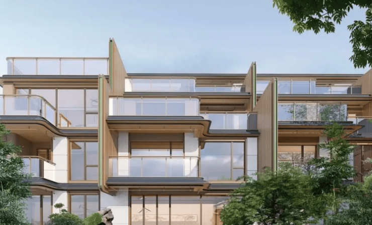 户型信息:叠墅户型建面约 198-218㎡,私梯入户,首层约 6 米层高,地下室层高突破 6.9 米;排屋户型建面约 215-300㎡,地下室层高约 7 米,户户赠送空中露台;合院户型建面约 284㎡,采用三面庭院设计。