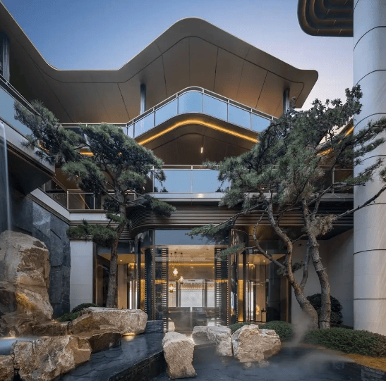 小区规划:采用越秀云庐系产品标准,立面以天青陶板为主材,搭配金属线条。园林中央景观轴借鉴西湖十景,打造 15 米高差立体园林。还建有 1300㎡下沉式会所,包含恒温泳池、私宴厅、健身房等功能空间。