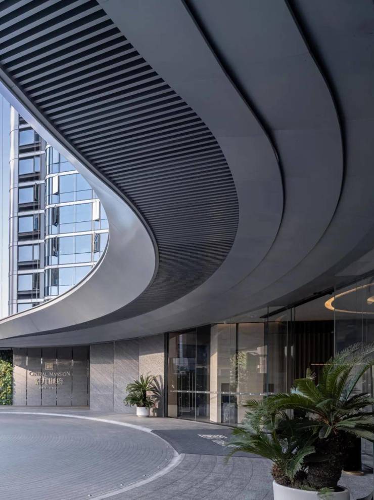开阔曲线界面对来自CBD的人车流动形成缓冲和纾解,为住户营造出尊贵而宁静的居住环境。