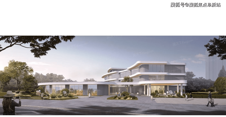 建筑设计:整体建筑风格采用现代简约与新中式元素相结合的设计。外立面以浅灰色真石漆搭配米白色线条,局部点缀深棕色木质格栅,屋顶采用平缓的坡顶设计。
