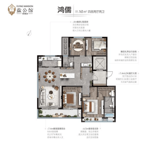 项目采用现代风格设计,以瞰景小高层、宽境洋房为主的品质生活样本打造,布局合理,沉稳大气。项目总规划8栋住宅楼,总建筑面积为5.48万㎡,由3栋6层洋房和5栋小高层组成,洋房有142㎡和154㎡的户型,小高层有136㎡、143㎡、163㎡的户型,其中143㎡户型为一梯一户。