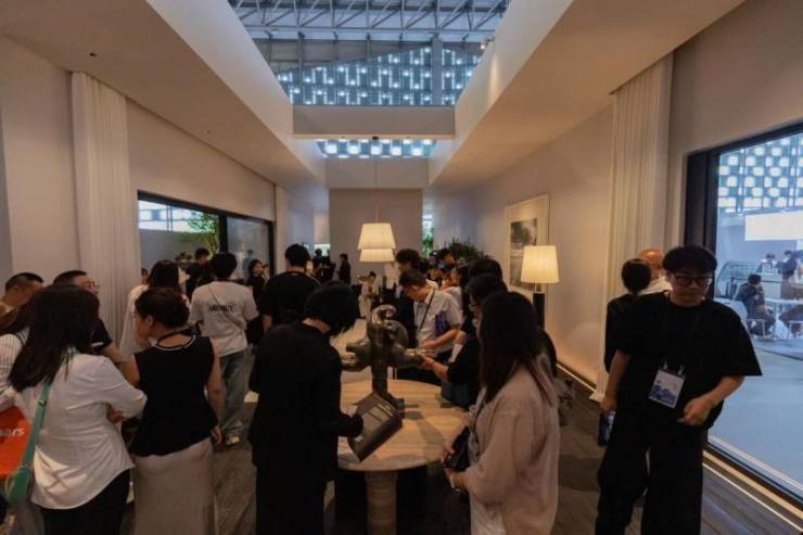 在展会现场,曾建龙与齐洪海这两位行业大咖成为焦点。曾建龙认为光是空间的灵魂,此次在设计上海的创作,旨在打造都市度假型生活方式,将设计聚焦于度假宅子里的会客厅。巧妙运用空间灯光与文化属性,驱动全新设计的美学逻辑,为观众带来别具一格的设计理念。