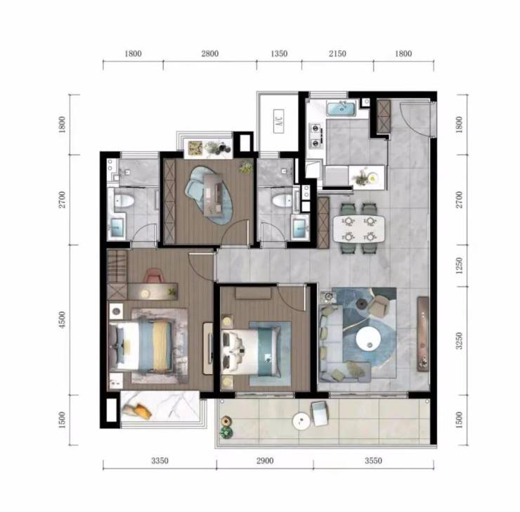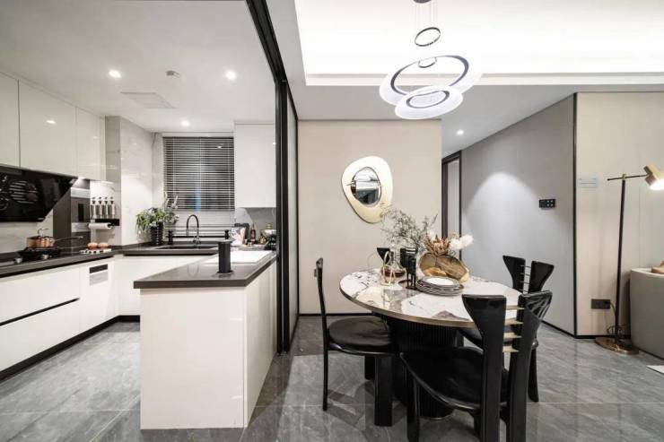 梁志天大师手笔,为其倾情擘画,96㎡户型格局做到了3房2厅1卫,白与深灰辅以黑,使空间更富有层次感,深与浅的碰撞是简约又不失高级的搭配。