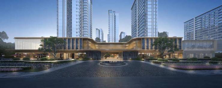 入口采用人车分流酒店式环岛式落客 ,给每一个前来的客户,贴心的服务和极致的体验。入口跌水以宇宙金景墙为背景,采用大量水景规划,并以浓重的笔墨手法来设计,衬托出壹号院的豪宅气场,营造出隐奢的艺术氛围。