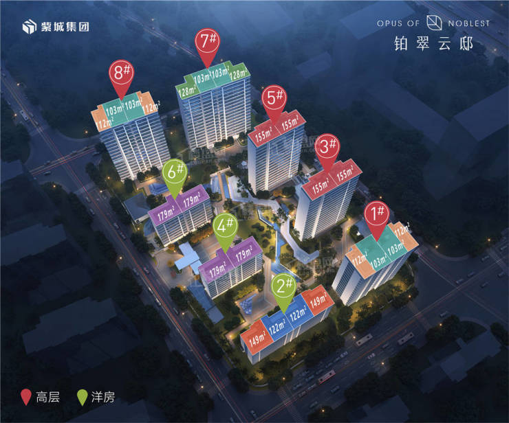 建筑类型与户型:包括 5 幢 16-18 层的高层和 3 幢 9 层的洋房,主力户型为高层 103㎡、112㎡、128㎡、155㎡,洋房 122㎡、149㎡、179㎡。