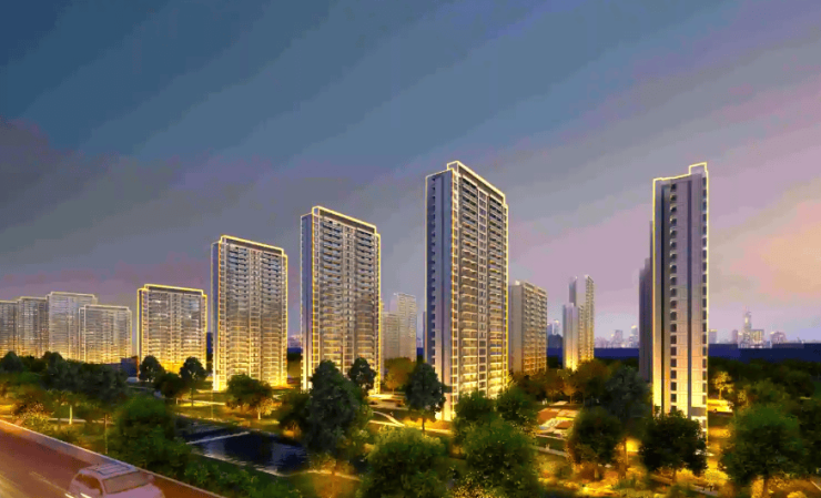 公区:现代简约 + 中式元素立面(真石漆 + 大面积 LOW-E 玻璃 + 金属线条),精装入户大堂,智能安防(人脸识别 / 门禁 / 监控),地下车库环氧地坪。