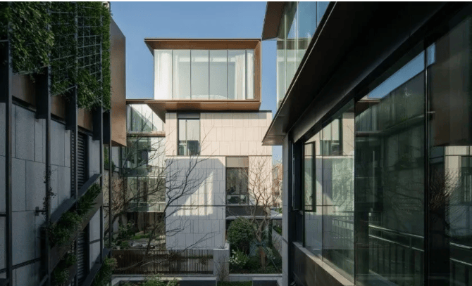 项目由星月投资与北科建联合开发,line+建筑事务所主持建筑师孟凡浩领衔设计,融合江南园林美学与现代建筑语言,打造低密度的独栋式园区。整个园区由71栋3至4层的花园独栋组成,采用“上居下办”的空间模式,实现办公、居住、社交功能的垂直整合。