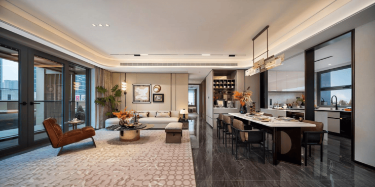 建筑设计:项目规划 20 栋 6-14 层滨水电梯花园洋房,采用全系铝板建筑立面、三玻两腔隔音玻璃,配备劳斯莱斯幻影星空顶地库、地上地下双精装大堂,从府门到入户门设置全程人脸识别等智能化系统。
