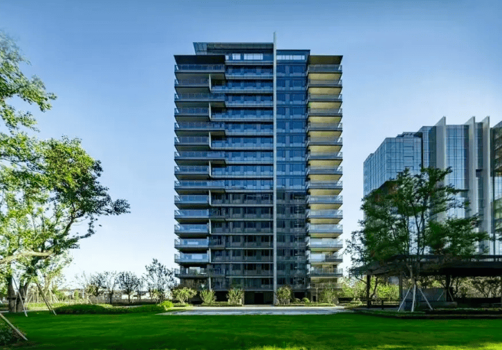 大师设计:line + 孟凡浩(建筑)、CCD 郑中(室内)、纬图李卉(景观)联合打造;玻璃幕墙 + 铝板 + 石材外立面,“光幕建筑” 辨识度极高