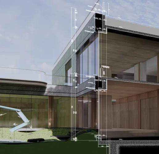 高难度曲线线条工艺、定制级曲面玻璃、LOW-E玻璃+铝板及石材豪宅质感用材等,每一项工艺,都是对细节的极致追求。主立面层间设计,从宝格丽奢侈品中汲取灵感,上下哑光金铝板,中间高透克莱因深蓝玻璃,完美呈现高定质感。