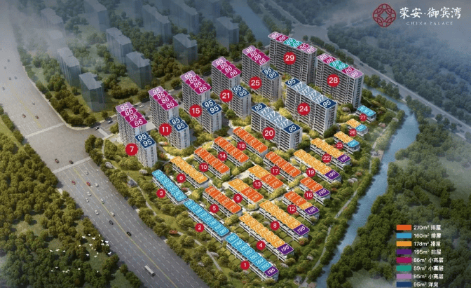 小高层:共 9-13 层,面积段为建面约 86㎡、89㎡、95㎡。