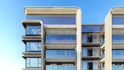 逸江源境建筑强调透明与轻质,采用石材+金属的搭配,铝板和大面积玻璃,展现舒展弧形线条,雕塑般的体量,质感细腻而纯净。