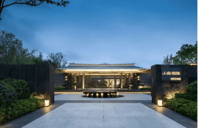 建筑风格:采用新中式建筑风格,整体大气舒展,顶部造型采用金属挑檐,传递东方美学张力。三段式经典美学比例,主体材料采用真石漆打造,给人以高雅、和谐、庄重之美感。