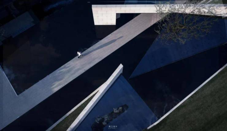 明快而富有未来感的对折线,分割着树、坡、墙和人行路径,实现空间中的穿透与阻隔,使得整个场地更为开放和融合。在对折和光影穿梭间,就是一个迷宫里的捉迷藏。