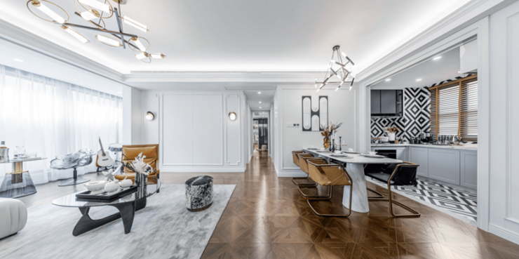 轴线约4.5米的超大横厅,保留了自由拓展的余地,可以分隔为2个功能区,也可以做霸气独立客厅,满足个性化的家庭生活。