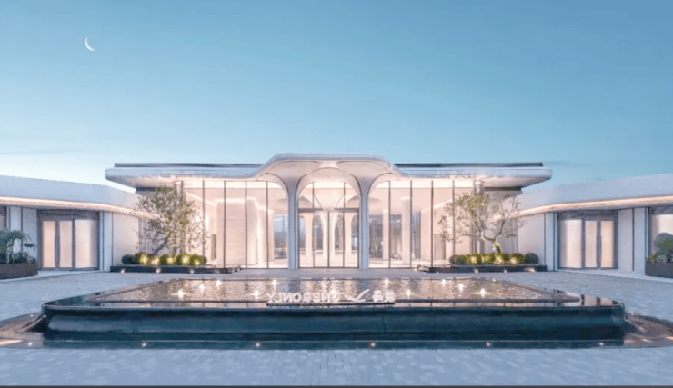 建筑风格:现代简约风格,外立面以玻璃、金属线条和浅色材质为主,符合年轻化、高效的城市审美。