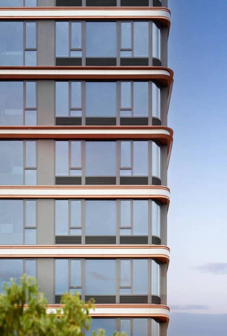 高层住宅立面采用曲面屏玻璃以及弧弯铝板线条,打破传统建筑直角线条的固有范式,进一步升级窗景视野,使建筑更具现代、艺术、灵动的美学气质,与周边植物园自然风光融为一体,焕新城市界面。