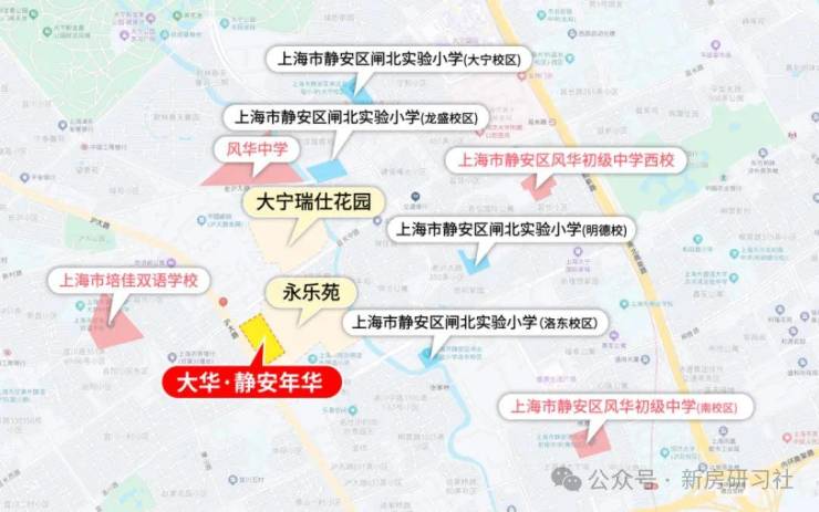 2、静安学霸圈,占领教育资源高地。周边有闸北实验小学和风华初级中学等,双一梯队名校环伺。