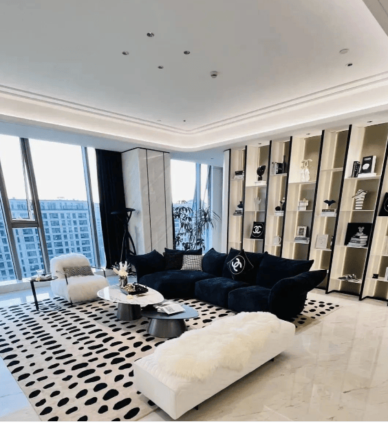 智能精装:采用全屋智能精装,配备德国摩根智能系统,涵盖智能调光、感应系统、温控系统、电动窗帘等。