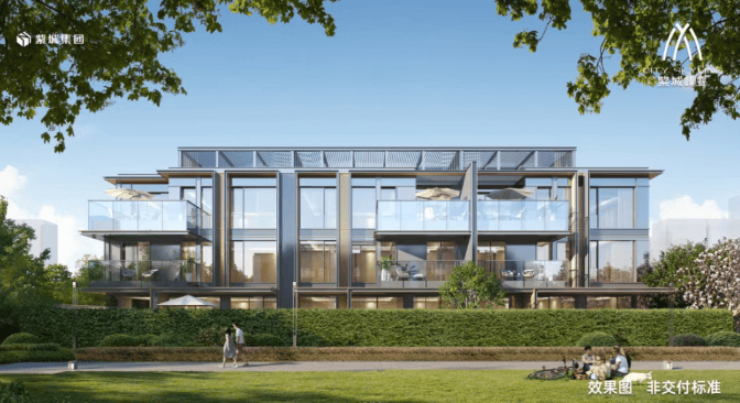建筑品质:采用四面全铝板 + 玻璃幕墙的外立面设计,别墅南立面采用多种型材铝板,门窗玻璃几乎全落地,高层窗墙比极高,搭配香槟金铝板线条和灰色金属格栅,极具现代轻奢风。