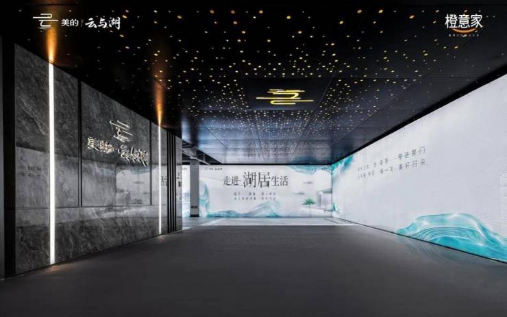 坡道末端采用45块1.2*1.2铝板组合亚克力,营造出整个强烈奢华感的星空顶。这是美的置业在徐州的首个地库星空顶,给业主不一样的归家体验。