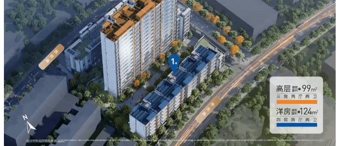 项目规划:总占地面积约 3.4 万平方米,总建筑面积约 10.2 万平方米,容积率 2.5,绿地率 35%。由 7 栋 14-17 层的高层和 4 栋 7-8 层的洋房组成,共计约 500 余套房源。