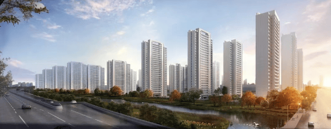 建筑规划:占地约 15.4 万方,总体量约 55 万方,容积率为 2.5,规划有 36 幢高层产品,住宅共有 3188 套房源,最大楼间距约 81 米。
