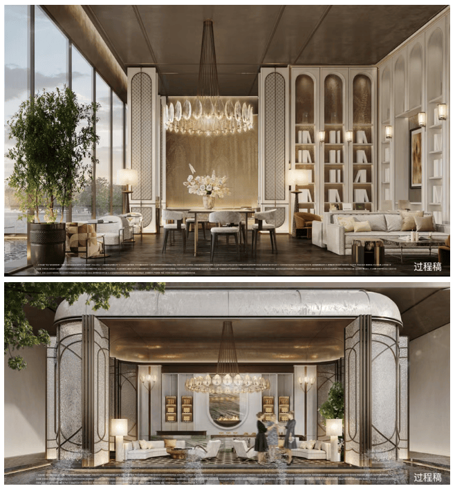建筑设计:还原三段式法粹艺术立面,增加窗墙比,形成 “独墅一致” 的美学;以同频市中心风貌大宅的砖墙基因,融入独具海派文化底蕴的红砖造艺,延续墅居经典三段式立面结构。