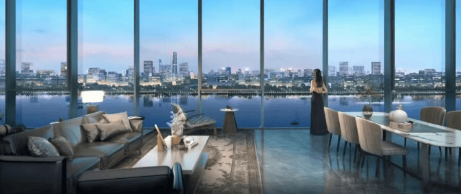 建面 302㎡头排江景户型:仅 10 席,270° 环幕视野,可尽揽潮起潮落与城市天际线。