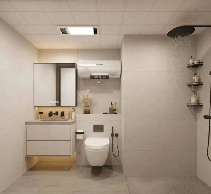 卫生间的设计当中选择白色和灰色进行相互搭配,再加上悬空收纳柜和壁挂马桶又让整个空间变得更加通透明确。 整个家里的设计师比较偏向于中性的,在保证空间的实用性和颜值的基础上,还透露着自然清新,耐看高级。