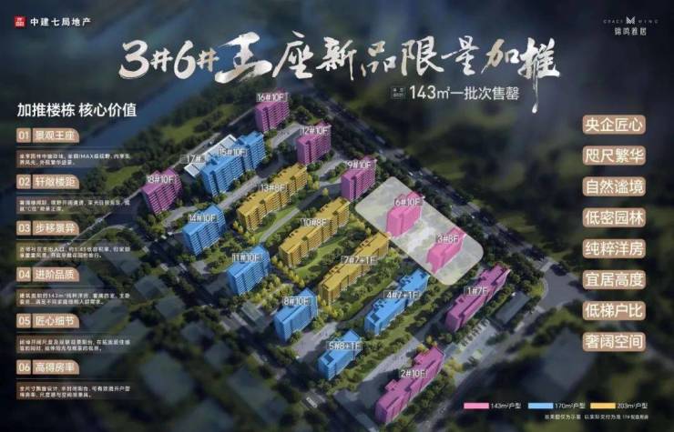 户型面积:建面约143㎡、170㎡、203㎡