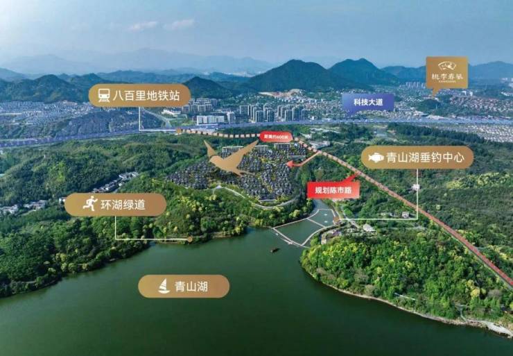桃李半岛: 一线湖景精装中式合院!180-270方,均价41000元/㎡,总价590-1287万。近地铁,配置豪华会所泳池。