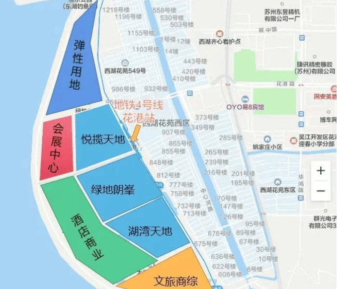 交通配套:紧邻地铁 4 号线花港站,西侧有友新高架,可通过环湖路、中山北路、沪常高速、南湖快速路等快速通达苏州各地,轻松融入长三角一小时黄金生活圈。
