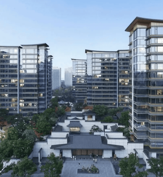 叠墅与排屋区则深度传承新中式基因,借鉴台州传统街巷布局,采用“悬山顶”多檐共生设计,搭配石材与金属线条,营造出典雅厚重的东方大宅风范。社区遵循“三进式”归家礼序,从大气的府门入口,到中央水景庭院,再到入户巷道,层层递进,彰显仪式感与尊崇感。