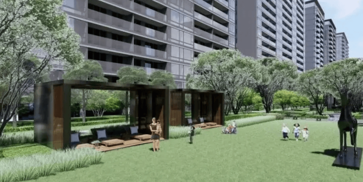 建筑设计:采用现代简约风格,外立面以真石漆为主,搭配金属线条,楼间距最大达 80 米,确保采光与隐私。
