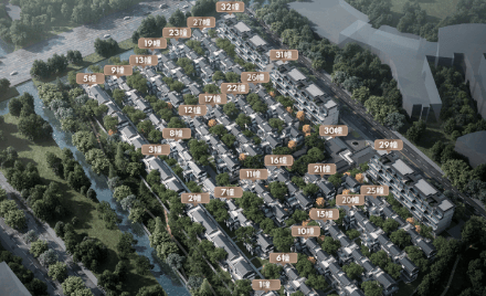 产品规划:项目总建面约 7.38 万方,容积率仅 1.05,规划 179 席院墅,包括约 206-328㎡的叠加、约 281-481㎡的合院两大类产品,是板块内唯一拥有合院产品的住宅项目,也是全常熟唯一的合院 + 叠墅纯粹低密院墅。