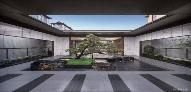 一进长巷渐舒,层林浸染,二进松瀑石涧,四水归堂,三进纳湖入院,碧波粼粼,层层叠进的三重礼序,彰显当代名门的大家之仪。