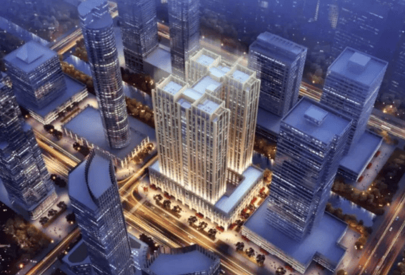 由知名设计师李少渠操刀设计,灵感来源于欧洲Art Deco风格,外立面采用进口巴西白玫瑰石材搭配玻璃幕墙,呈现简洁大气的现代感。