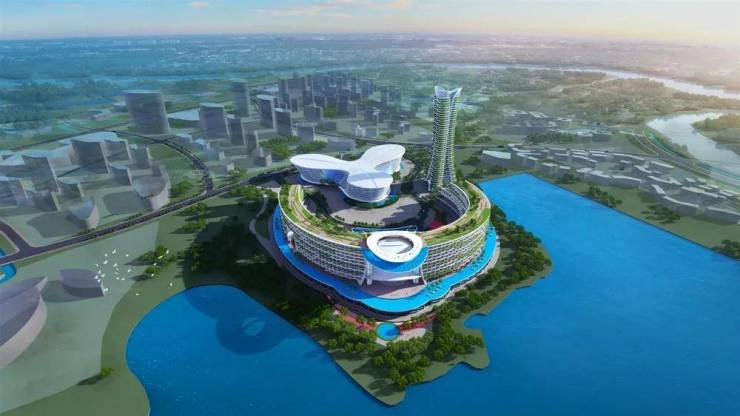 项目分二期开发:一期打造特色水乡小镇和以国际会议综合体“环球中心”为主的生态健康智慧新城;二期打造温泉小镇及酒店核心区。