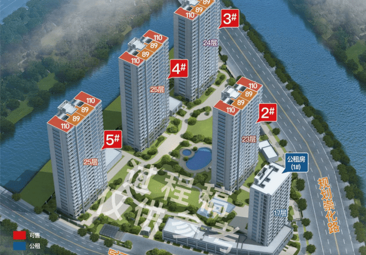 总建筑面积约6.3万㎡,规划5幢高层建筑,其中可售的4幢为23-25层。
