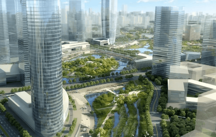 项目自西向东将豹子溪公园、荷塘公园、奥林匹克体育公园,形成一塘两园的公园城市格局,构建一个面向未来的活力新城域。