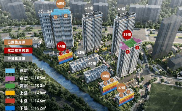 产品类型:在售房源包括高层和叠拼两种,高层户型面积为 101-135 平方米,叠拼户型面积为 145-148 平方米