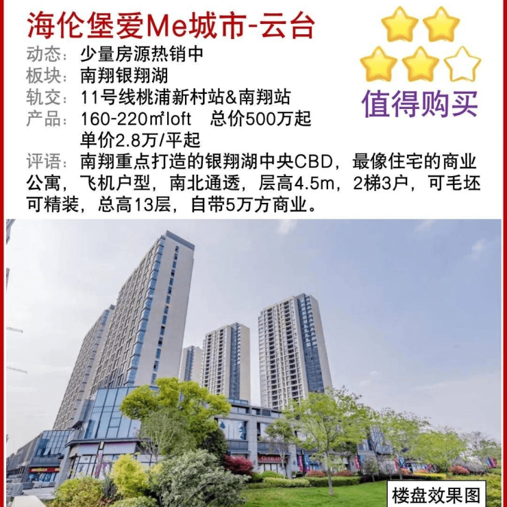 商业方面,本项目自带5万方商业沿街底商配套,周边有南翔老街驾车约9分钟,江桥万达驾车约20分钟,印象城驾车约14分钟,醇熟商业配套环伺左右。