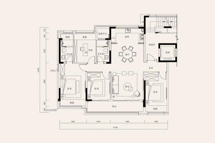 建面约143㎡户型: