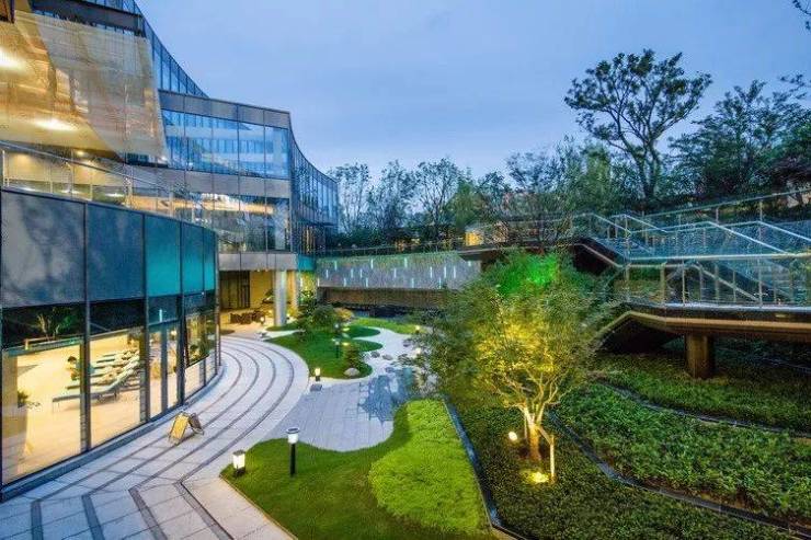 建筑设计:由澳大利亚柏涛(墨尔本)建筑设计担纲,建筑风格融合了苏州古韵与现代风格,整体外立面简洁流畅,以轻盈的体量、新颖的横向线条夺人眼球,顶部体量的收缩以及屋顶百叶等细节处理使建筑更具现代化和科技感。