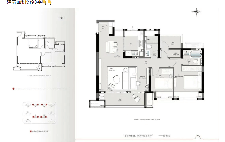 户型设计多样,涵盖 83㎡、89㎡、98㎡的三房设计,室内层高约 3 米,南北双阳台,空间利用率高,无论是刚需还是改善型需求,都能满足。