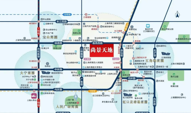 交通配套:步行 900 米到达 3 号线殷高西路地铁站,乘坐 1 站到达长江南路站便可换乘 18 号线,未来还有规划在建中的 19 号线将在江杨南路设立站点;自驾 5 分钟内到达逸仙高架路,10 分钟可上内环与中环,30 分钟内可到达人民广场、陆家嘴等上海核心商圈347。