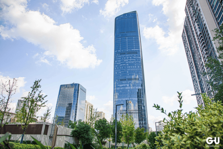 其中,写字楼板块以“宁波塔”为核心,高达249米、共56层,是目前宁波第一高楼,也是一座集“商务效率、建筑美学与生态策略”为一体的甲级办公载体。