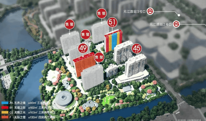 主力户型:建面约 93-134㎡三至四房。其中,93㎡三房总价约 587 万起;103㎡三房总价约 700 万级;134㎡四房总价约 900 万级。